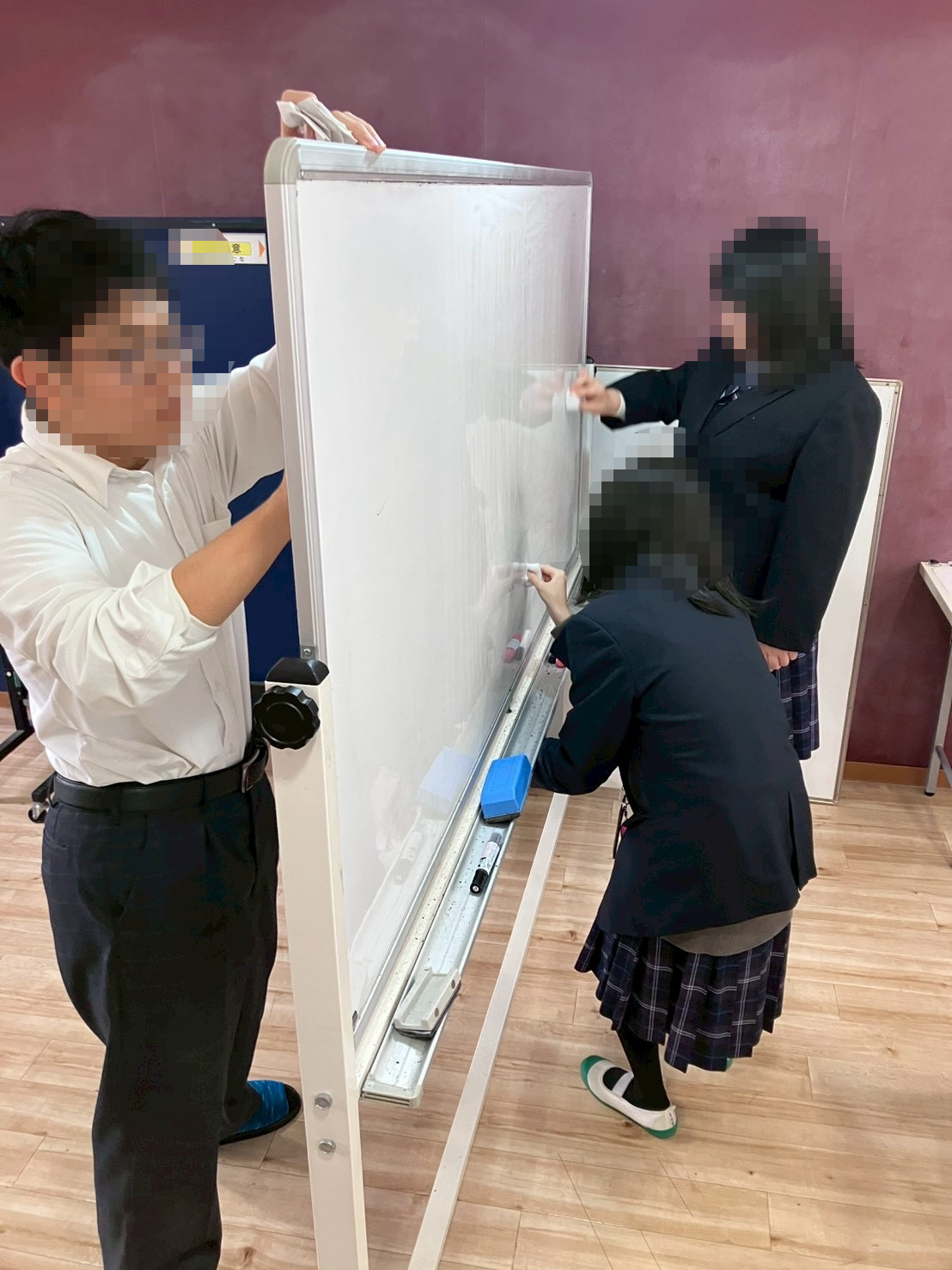 最初は、みんなで使用する、活動室の拭きそう時、トイレ、ホワイトボードの掃除を行い、その後、毎日みんなが学習した個人のブース片付け最後は、拭き掃除をしました。